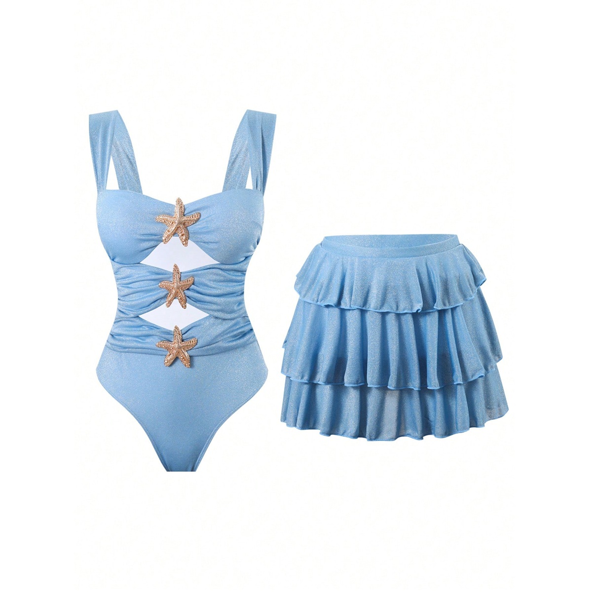 Starfish One-Piece Swimsuit with Ruffle Skirt Set